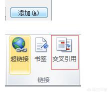 6,点击界面右边的“添加”,即可成功设置为书签了。如果想引用该书签,则选择“链接”设置中的“交叉引用”