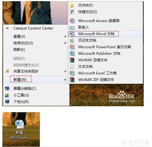 1,在电脑桌面,点击右键,找到“新建”选项,在“新建”的下拉目录中找到“word文档”,可以对该文档重命名为想要的名称