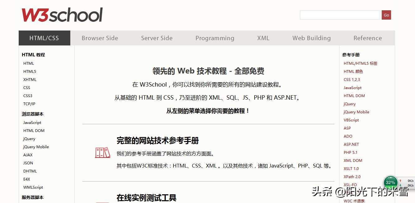 这个网站主要是可以学习所有的网站建设教程,从基础的 HTML 到 CSS,乃至进阶的 XML、SQL、JS、PHP 和 ASP.NET。如果你是初学者,想学习关于web技术的话,可以参考这个教程。