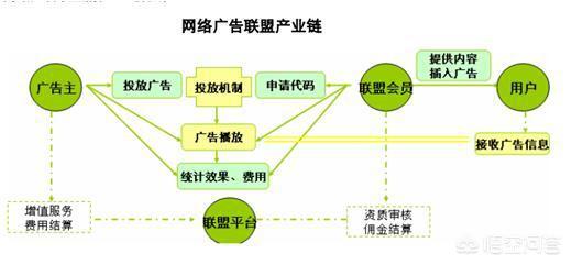 就是整个网络广告联盟的产业链。随着科技的发展,网络信息越来越发达,网络资源也是越来越多元。网站要想达到盈利,就要找到适合本网站的对象。广告主投放了各类广告,网站则从广告联盟所提供的广告代码中找到合适的,放在自己的网站上。当这一系列弄完成之后。就可以根据流量的得到收益了。