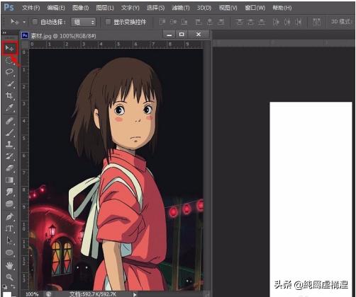 第二步:在左侧工具栏中选择“移动工具”,将素材图片移动到白色背景中。