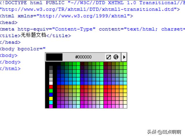 3、我们在</head>标签下面输入<body bgcolor=" 这时我们会发现有很多颜色供我们选择,这里我们选择红色。最后不要忘了标签的闭合,即写成<body bgcolor="#FF0000">,这时发现背景变成了红色。