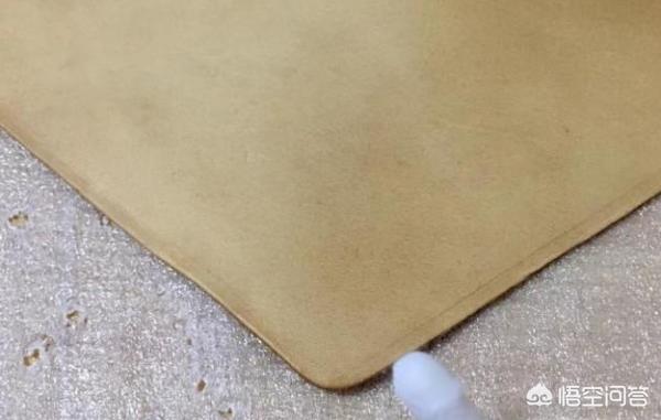 7、用棉签蘸少许封边液,涂在皮革的边缘,并用打磨棒打磨。再涂一层封边液,继续打磨到边缘光滑为止。