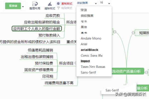 外观栏,可以改变导图的外观,整理布局,字体字号等调节。