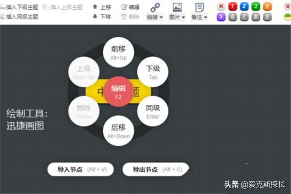 看下面的栏目条,可以插入不同级别的主题,上下移动,编辑,插入链接、图片等,还可以插入123等级别图案。