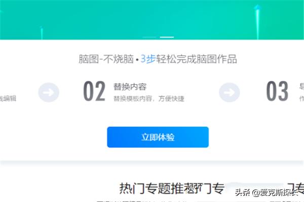 3在转入的页面中选择立即体验就可以进入到在线编辑思维导图的页面中去,在页面四周是工具栏,页面中是中心主题,围绕中心主题可以进行编辑使用。