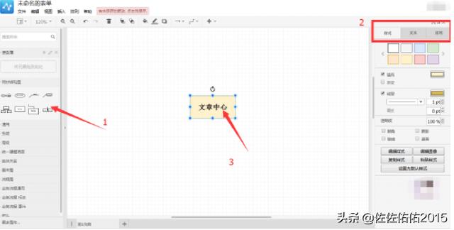 2、从软件界面左侧选择一个文本框,并将其放置在中间位置,在周围留出空白,接着在文本框中填入中心思想。