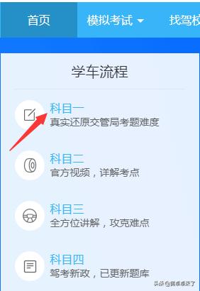 在首页选择科目一。