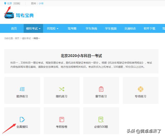 我们先在左上角更改本人所在地区,然后选择“全真模拟”即可开始模拟科目一考试。