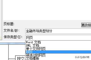2、绘制好流程图之后,点击word工具栏上的“文件-另存为网页”,保存为网页,注意保存类型选择网页,而不是“单个网页文件”或者其他什么类型。