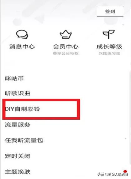 2、之后会滑出此浮页,这里有可操纳的字钮,找到此栏自制彩铃的黑字,便从这按入。