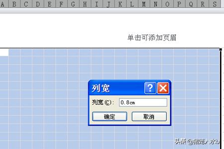 3、在列宽对话框中设置宽度为0.8cm,点击确定按钮。