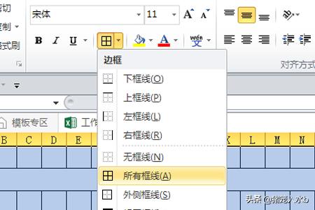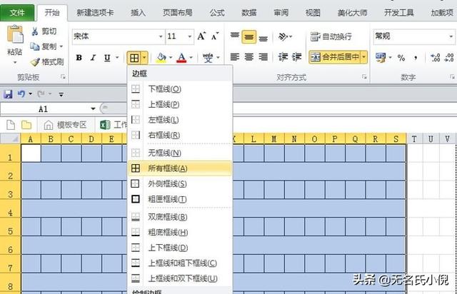 6、执行视图-普通命令,选择数据区域,执行边框-所有框线命令。
