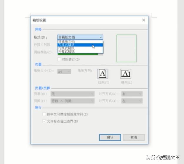 4、在格式里选择方格式稿纸,就设置出作文方格式稿纸样式;