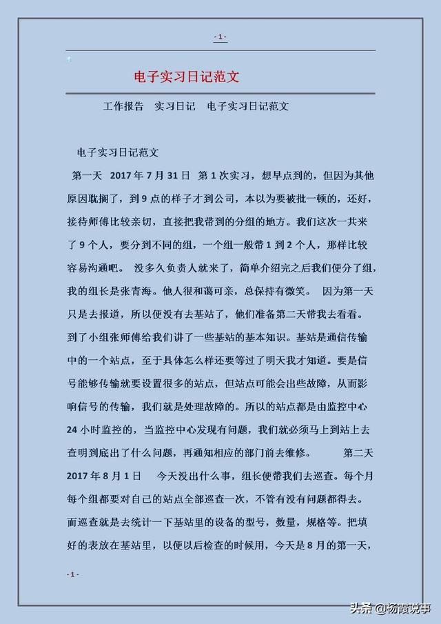 日记的形式是最灵活的,你想怎么记就怎么记,你能写多少就写多少,完全由你自已来定。短的只有一两句话甚至一两个字。如有实习生这样记:“又月义日,星期x,晴。病。躺在床上,多想班上的同学啊!”这就很有感情。如果有时间,那么长篇大论―记叙、描写、抒情、议论,任由你的大笔驰骋。一般来说,限于时间、精力,实习日记要精炼、简洁。不必太长太重文彩。当然,如果你把日记同时作为自己的文学练笔。那么。情文并茂、相得益彰就更好了;内容好,文笔美,谁见了都会称赞的。