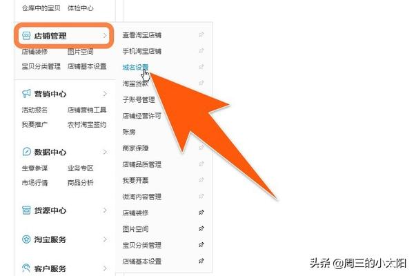 第二步:在左侧导航栏中找到“店铺管理”,点开后选择“域名设置”;