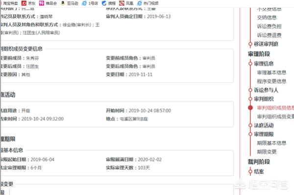 4、这时页面跳转就可以看到该被查询的案件相应的立案、审理、费用缴纳以及诉讼参与人等相关的信息了。